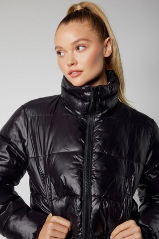 Black High Shine Pu Vinyl Cropped Puffer Jacket Lexifashion